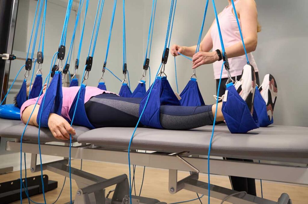 Der Schlingentisch ist ein spezielles Therapiegerät, bei dem einzelne Körperteile oder auch der ganze Körper mithilfe von Schlingen und Seilen entlastet werden. Durch das „Aufhängen“ in den Schlingen reduziert sich das Eigengewicht, was Bewegungen leichter und schmerzfreier macht. Besonders bei Rücken-, Hüft- oder Gelenkbeschwerden kann so gezielt und schonend trainiert werden. Gleichzeitig lassen sich Verspannungen lösen und die Beweglichkeit deutlich verbessern. Der Schlingentisch ermöglicht somit eine sanfte, aber effektive Behandlung, die Schmerzen lindert und die Heilung unterstützt.